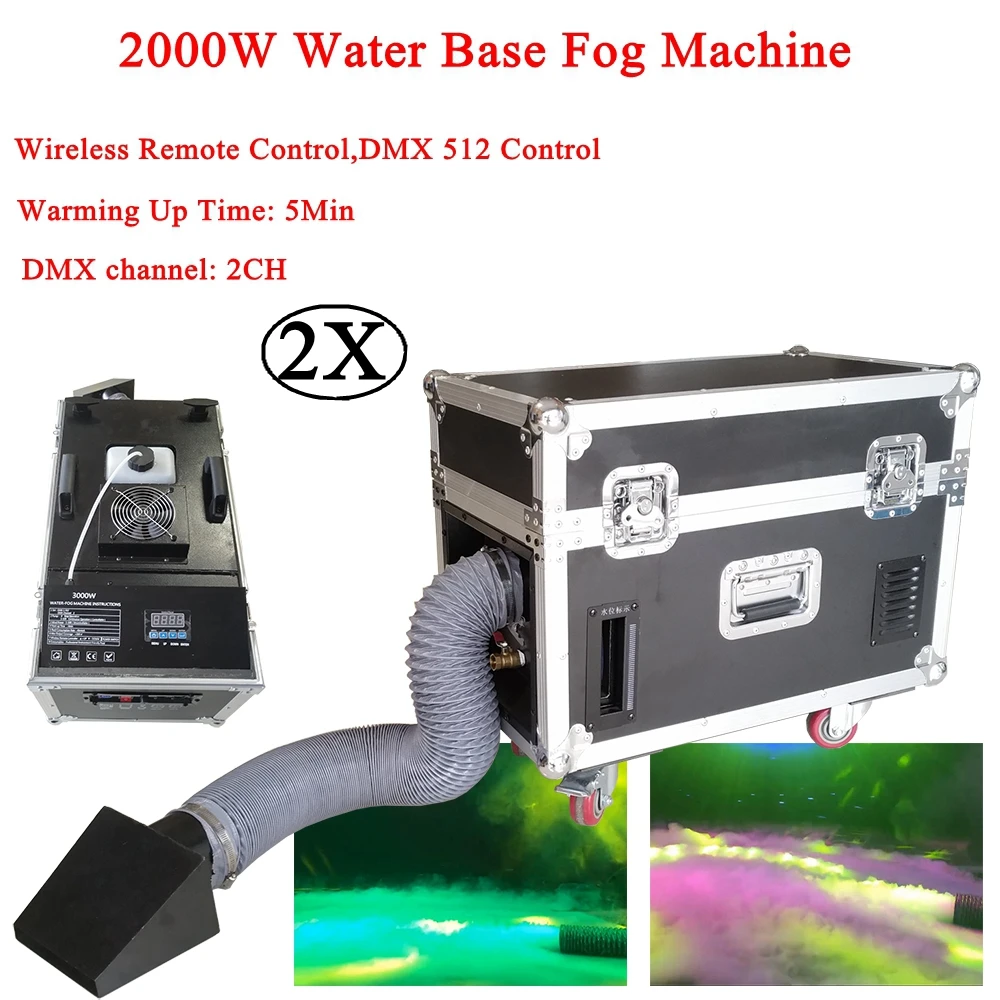 2Pcs/Lot Mini 2000W Water Base Fog Machine Smoke Machine Wireless Remote DMX512 Stage Effect Low Ly