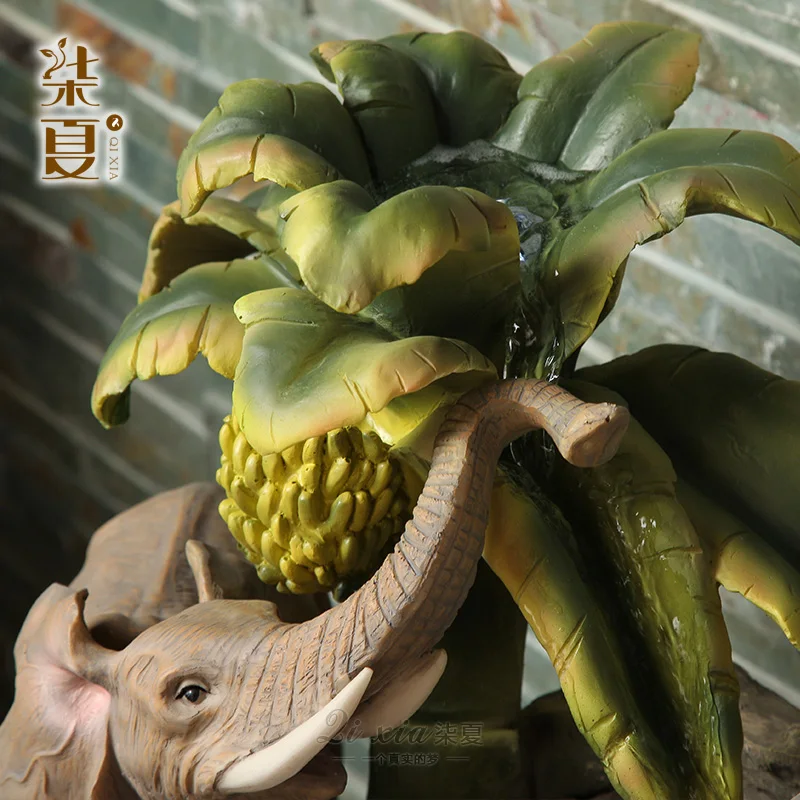 Seven summer Lucky Elephant water fountain animal decoration Feng Shui Chinese furniture entrance T