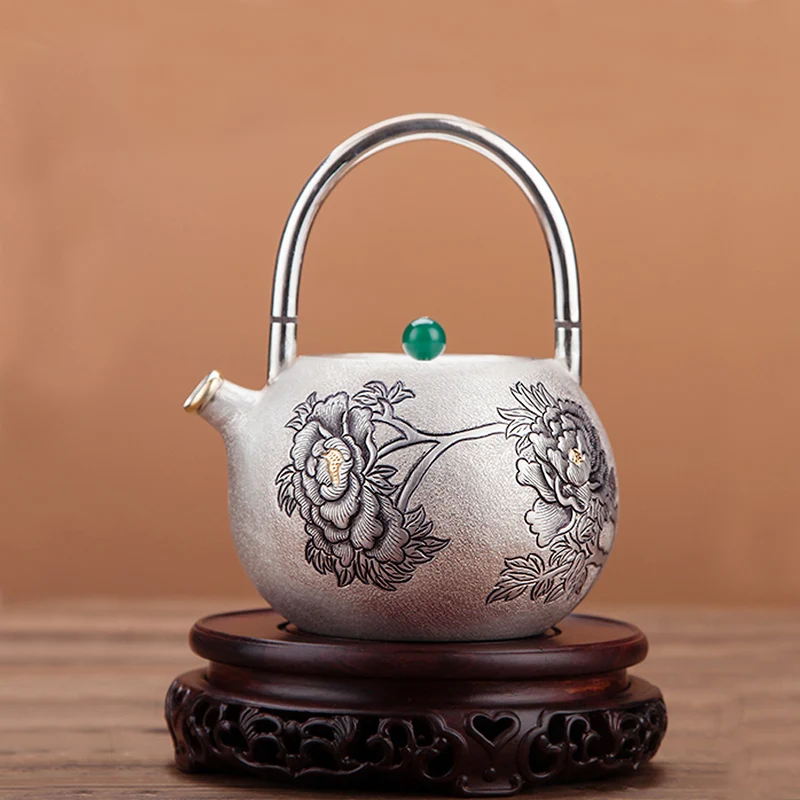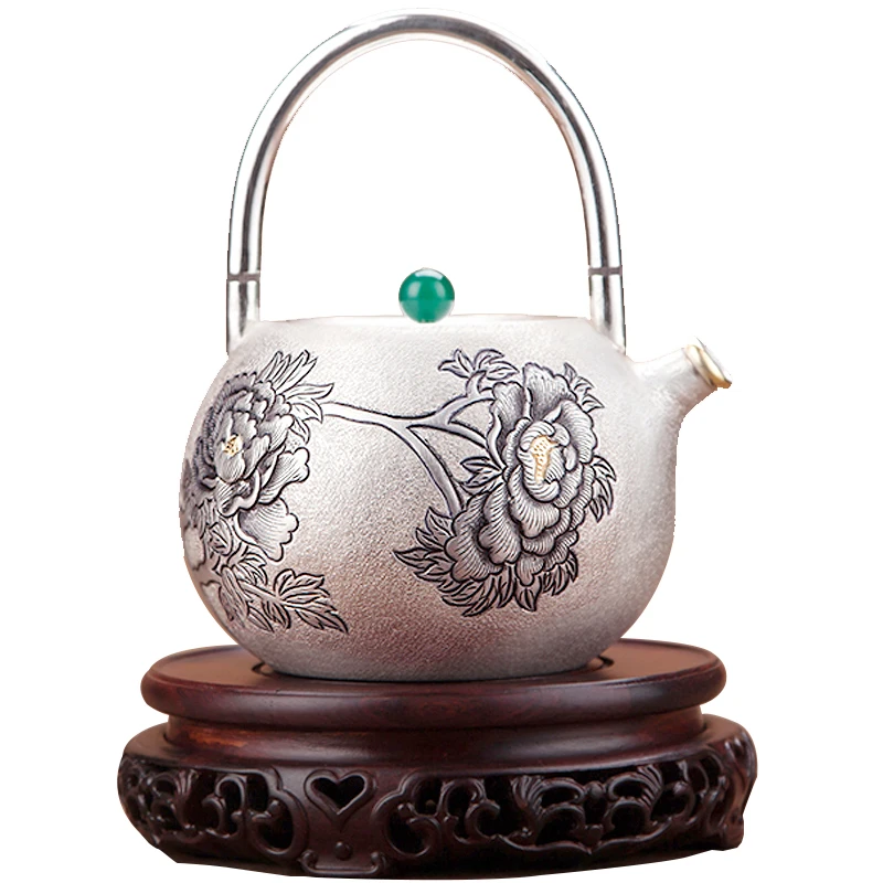 pure silver Kung Fu tea set manual production pure silver 999 do old burn water kettle mention beam